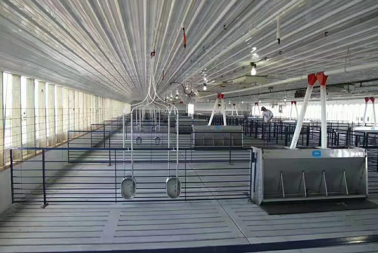 This fattening house system is designed to support healthy and efficient pig growth from the nursery stage through to the finishing stage. The spacious pen layout allows pigs to move freely, reducing stress and promoting better feed conversion.