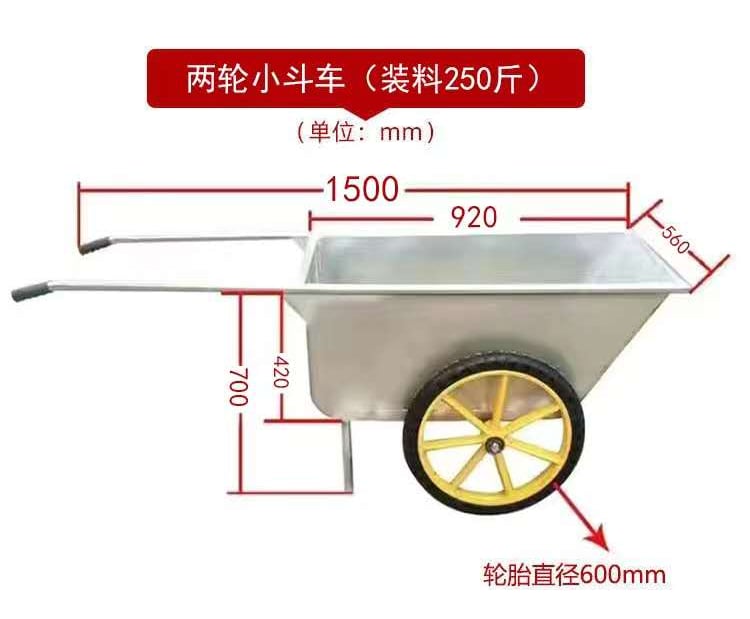 This feed transfer trolley features a wide and deep hopper for efficient feed loading and transport. Equipped with large-diameter solid wheels, it offers smooth movement and good stability on various farm surfaces. The ergonomic extended handles reduce pushing effort, while the balanced structure ensures safe operation during feeding tasks. Ideal for daily feed transportation in pig, cattle, and sheep farms.