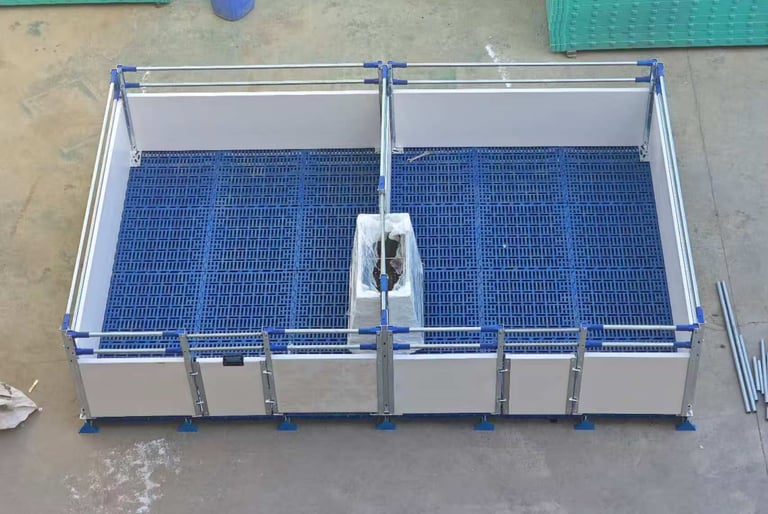 This pen system is designed for modern pig farms, covering nursery, growing, and group housing stages. The structure combines durable galvanised steel frames with high-quality plastic or composite slatted flooring to ensure a clean, dry, and comfortable environment for pigs.